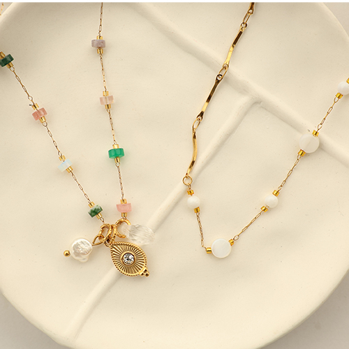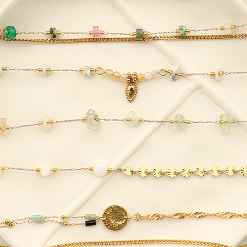 Zubehör aus Stainless Steel - Rostfreiem Stahl Gliederkette Natursteinmischung Tube Gold-black-grey