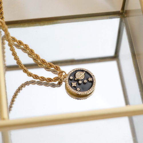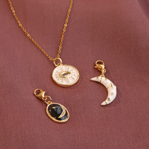 TQ Metall Brass Anhänger Moon Enamel Gold-black