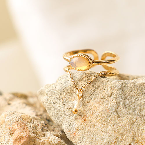 Stainless Steel - Rostfrei Stahl Ringe mit Naturstein Gold-light pink