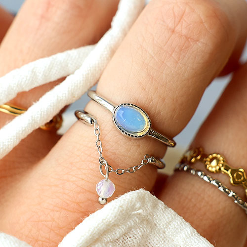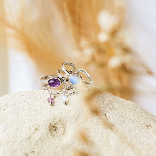 Stainless Steel - Rostfrei Stahl Ringe mit Naturstein Silver-lilac purple-white