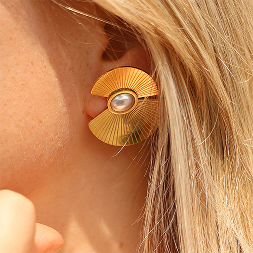 • Stainless Steel - Rostfrei Stahl Ohrringe / Ohrstecker Fan with imitation pearls Gold