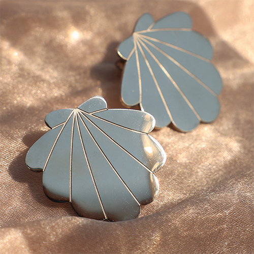 • Stainless Steel - Rostfrei Stahl Ohrringe / Ohrstecker Shell Silver