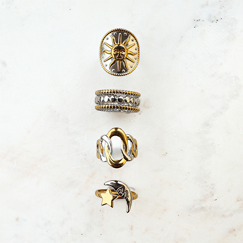 Stainless Steel - Rostfrei Stahl Ringe Star and Moon Gold-silver