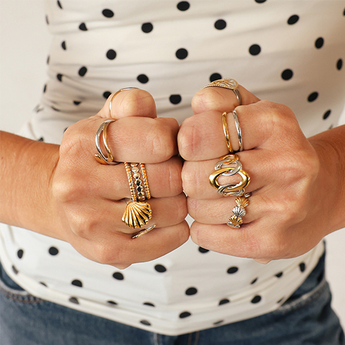 Stainless Steel - Rostfrei Stahl Ringe Shell Silver-gold