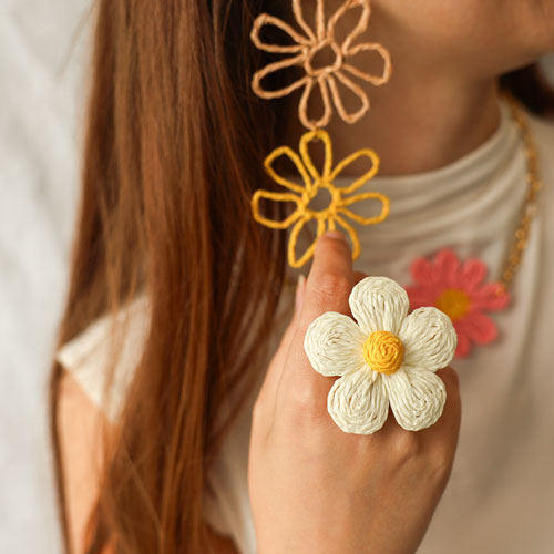 Diese neue Serie mit Bast-Anhängern und Zubehör schafft Sommerfeeling! Erhältlich in spielerischen Formen und fröhlichen Farben wie Lila, Weiß, Beige und Rosa. Ideal, um Ohrringe, Halsketten und trendige Ringe im Statement-Look zu designen. Machen Sie Ihre einzigartigen Schmuckkreationen auf unseren Spezial-Displays zum unwiderstehlichen Blickfang für Ihre Kundinnen und Kunden.