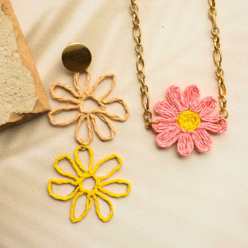 Halsketten, Ohrringe und Ringe mit Bast-Anhängern und Zubehör entwerfen