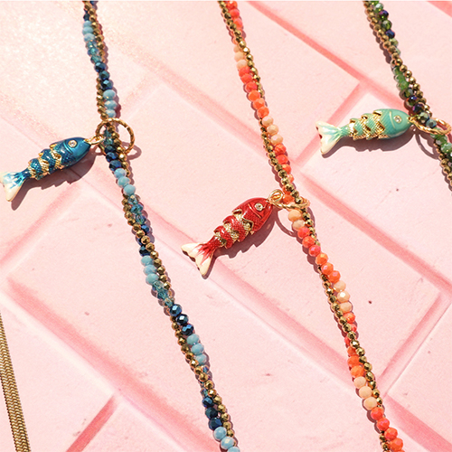 Diese neue Serie bietet bunte Ketten mit funkelnden Facettperlen und Edelstahl-Herzohrringe mit Emaille-Details. Zwei markante Eyecatcher, die sich perfekt ergänzen oder einzeln getragen werden können. Fertig konfektioniert, hochwertig verarbeitet und optimal kombinierbar für vielfältige Schmucklinien.