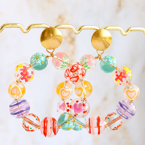 Entdecken Sie unsere neue Serie handbemalter Glasperlen mit bezaubernden Motiven wie Kirschen, Herzen und Blumen. Mixen Sie diese farbenfrohen Perlen mit anderen Kollektionsteilen zu trendigen Ohrsteckern oder Creolen und kreieren Sie Ihre einzigartige Ohrringkollektion.