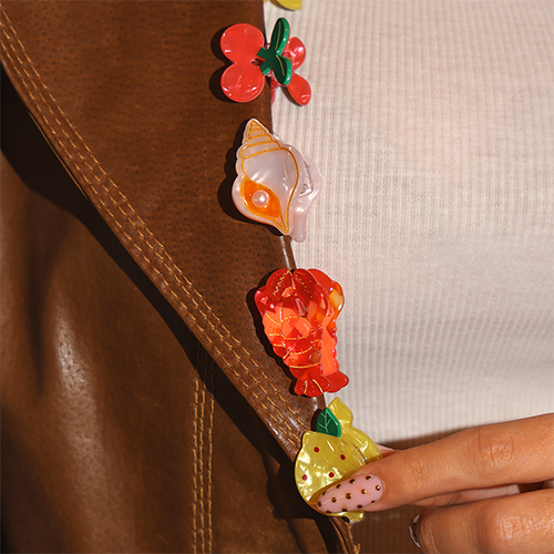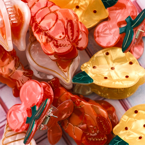 Diese Serie vereint Haarclips und Haarklammern in klaren Designs mit Varianten, die aufgrund ihrer Ösen individuell designt werden können. Für einen verspielten Statement-Look eignen sich beispielsweise Jasseron mit kleinen Anhängern.