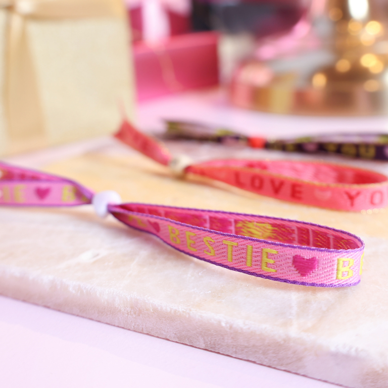 Schmucktextband "bestie" Pink-lime green