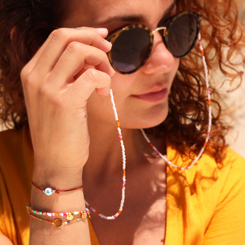 Sonnenbrillen Kordel aus Rocailles Gold-Schwarz-Weiss