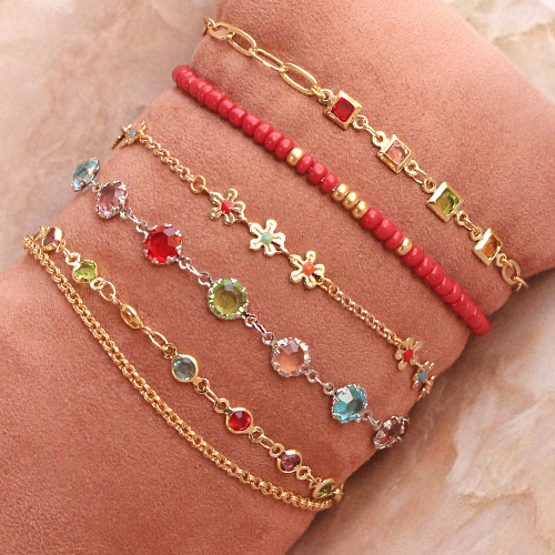 TQ Metall Brass Gliederkette flowers Gold-multicolour