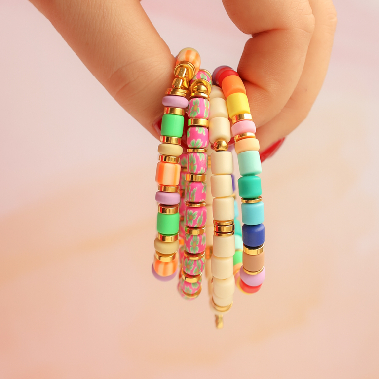 Kombinieren Sie diese fröhlichen Armbänder mit Edelstahlschmuck aus unserem Sortiment.