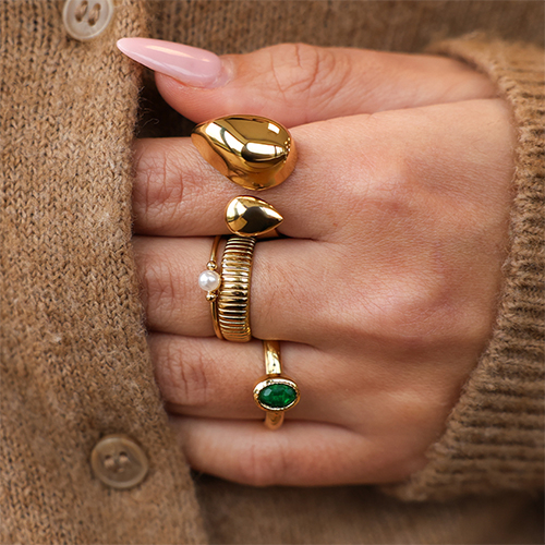 • Stainless Steel - Rostfrei Stahl Ringe Drops Gold