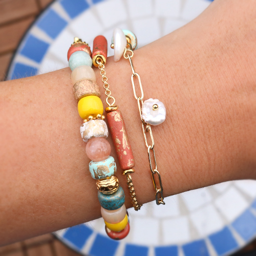 Ideen für eleganten Schmuck mit goldgesprenkelten griechischen Keramikperlen in Designerqualität