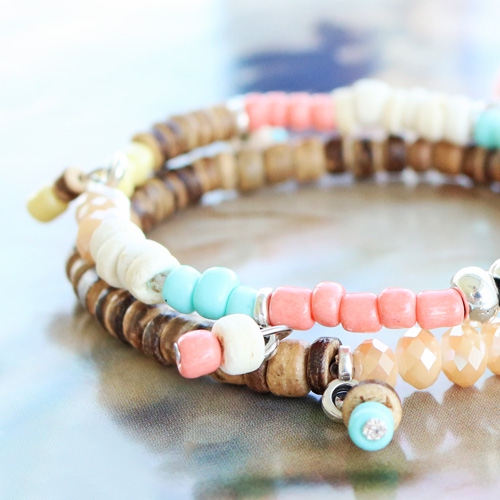 Let´s go Caribbean! Schmuck aus Kokosperlen, Rocailles und Facett Perlen.