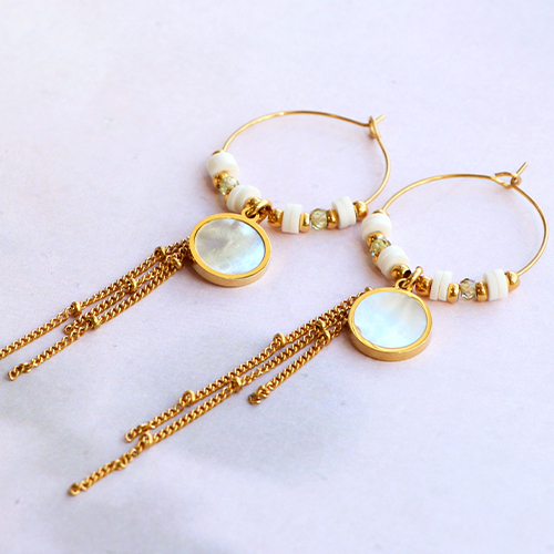 Anhänger aus Stainless Steel - Rostfreiem Stahl 12mm shell White (Naturliche Farbe Muschel)-gold