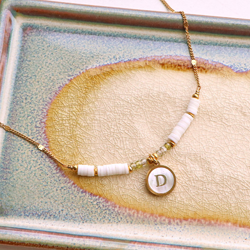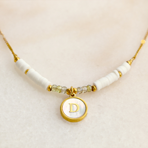 Anhänger aus Stainless Steel - Rostfreiem Stahl 12mm shell initial D White (Naturliche Farbe Muschel)-gold