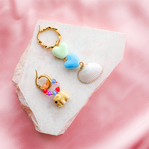 Heute möchten wir Ihnen unsere neue fröhliche Serie mit Keramikperlen ans Herz legen. Diese Perlen erhalten Sie nicht nur als kleine bunte Keramik-Tierchen. Freuen Sie sich auf Elefanten, Schildkröten, Fische, Pilze, Herzen und Muscheln. Einfach zu fröhlichen Schmuckstücken mit Millefiori-, Facett-Perlen, trendigen Bändern und Muschel-Anhängern kombinieren.