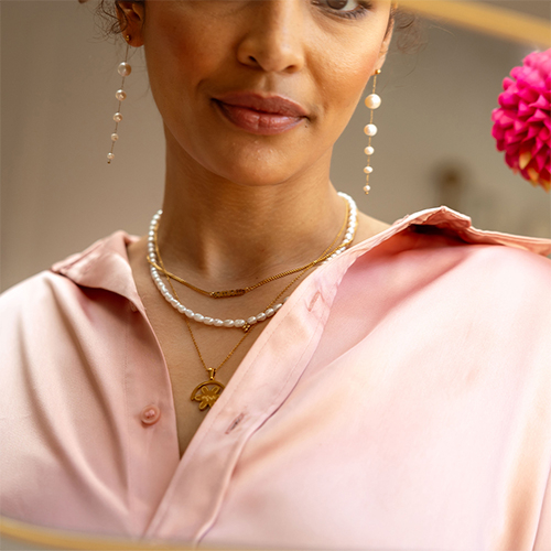 Stainless Steel - Rostfrei Stahl Kette Pearls Gold