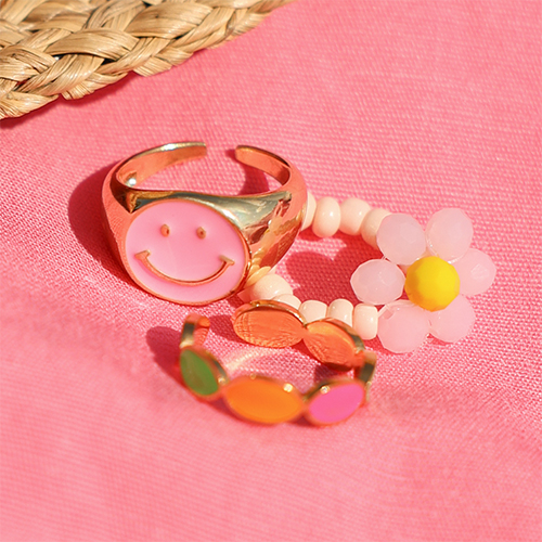 Trend Ringe Enamel Smiley Pink-gold