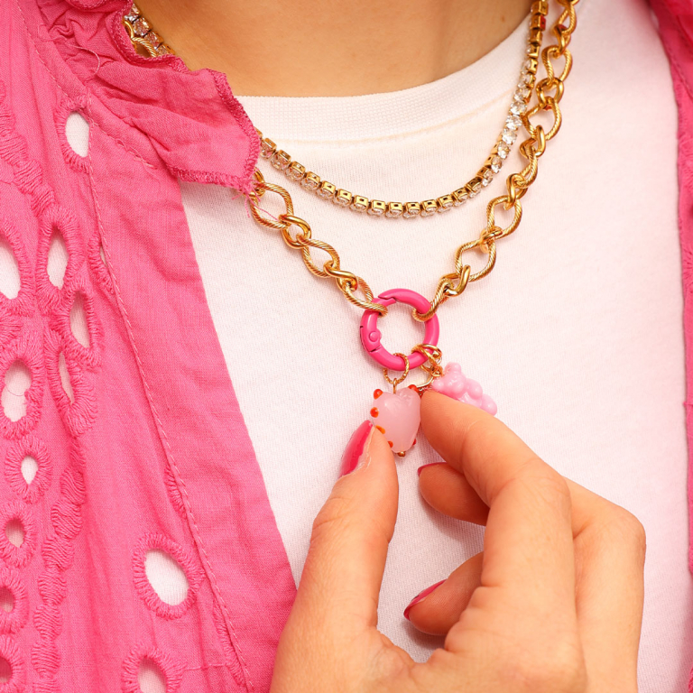 Bereit für was Neues? Dann lassen Sie sich von der “Looks, die wir lieben Edition”: Pink Party inspirieren! Der Perlen Großhandel Online feiert diesen Monat seinen 18. Geburtstag und das bedeutet, dass es Zeit ist für partytaugliche Schmuckinspirationen im Perlen-Großhandel-Online-Stil! Wir präsentieren Ihnen eine exklusive Kollektion, die sanfte Rosatöne mit goldenen, klobigen Akzenten kombiniert. Entwerfen Sie Ihren individuellen Look mit Halsketten kombiniert mit Strass und Gliederketten daran auffällige Anhängern, mit stilvollen Waist Chains aus Acryl-Gliederketten und verschiedenen DQ-Anhängern entworfen oder mit Ohrringe, an denen stylische Plexx- und Kristallglas-Anhänger, kombiniert mit Jasseron und eleganten Charms verspielt bei jeder Bewegung schaukeln.