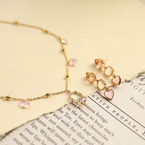 Anhänger aus Kristallglas Heart Light pink-gold