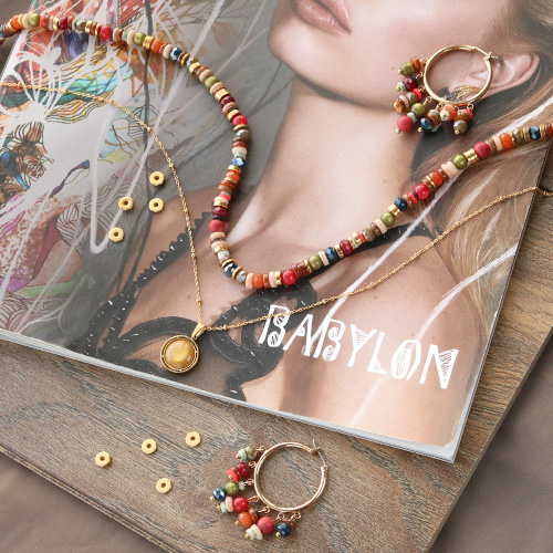 Stainless Steel - Rostfrei Stahl Kette Ball Mix&Match Gold