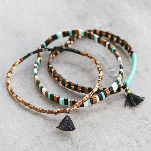 Mit den neuen Miyuki-Perlen können Sie diese Ohrringe und Armbänder herstellen.