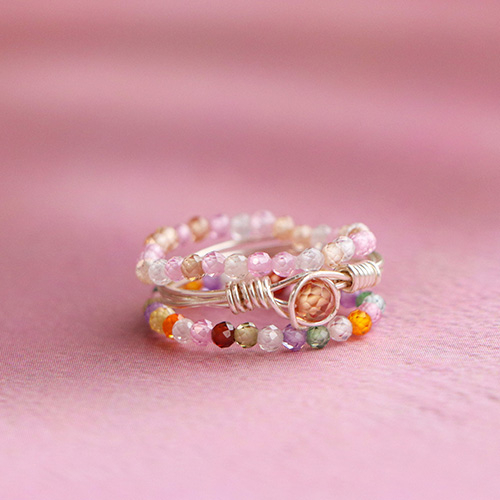 Sie möchten Ihren Kunden eine Kombination aus Edelstahlringen und selbstgemachten Ringen zum gemeinsamen Tragen präsentieren? Dann können Sie mit Zirkonia-Perlen, Miyuki-Perlen, Süßwasserperlen und elastischem Schmuckband eine wunderschöne Ringkollektion entwerfen. Dazu passende Armbänder kreieren Sie, indem Sie Zirkonia-Perlen in verschiedenen Farben und Größen miteinander kombinieren und als Blickfang bringen Sie abschließend kleine Anhänger an.