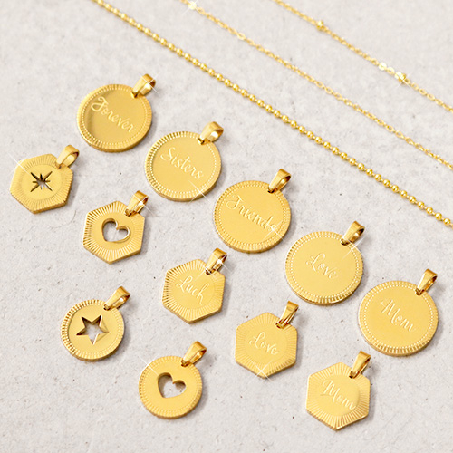 Anhänger aus Stainless Steel - Rostfreiem Stahl Hexagon "mom" Mix&Match Gold