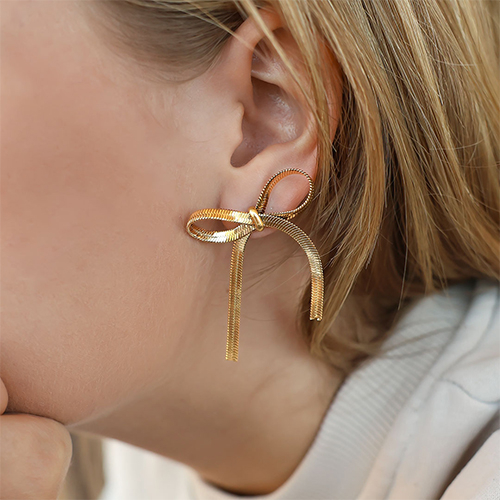 Stainless Steel - Rostfrei Stahl Ohrringe / Ohrstecker Bow Gold