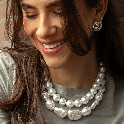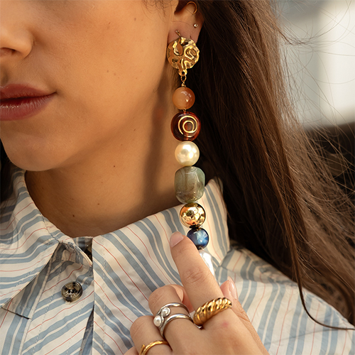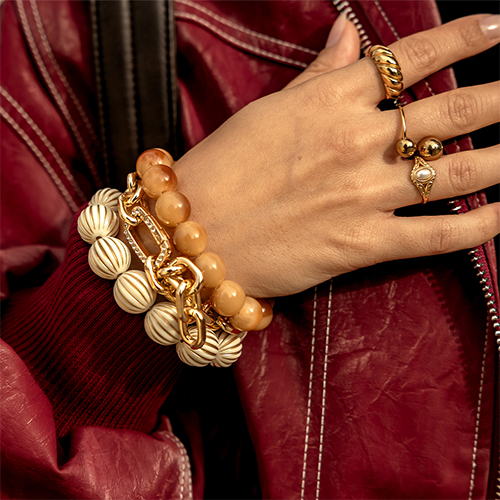 Diese Saison setzt auf starke Designs und klare Highlights: große Broschen, Statement-Armbänder und grobe Ketten zählen zu den Must-haves. Perlen und organische Formen ergänzen den Trendmix und machen Ihre Kollektion herbst- und winterfit.