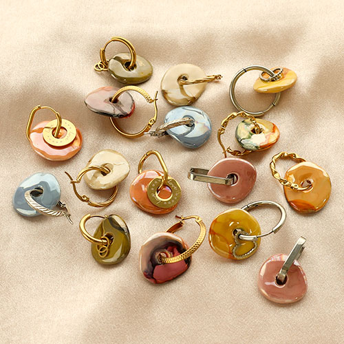 Sind Sie auf der Suche nach Perlen, um trendig bunte Ohrringe zu gestalten? Diese griechischen DQ-Donut Perlen aus Keramik lassen sich perfekt auf Creolen Ihrer Wahl schieben. Ein individuelles Design erzielen Sie mit kleinen gold- und silberfarbenen Anhängern oder Zwischenstücke aus Edelstahl. Dafür bieten sich unsere Herzen oder kleine Ringe an.