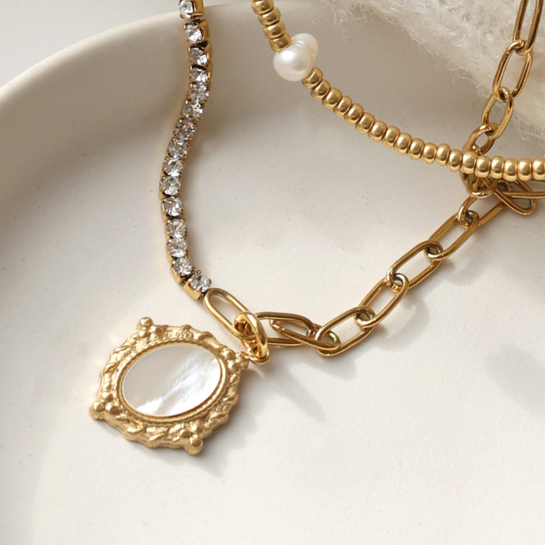 Zubehör aus Stainless Steel - Rostfreiem Stahl Collierschlaufe oval für Anhänger Gold