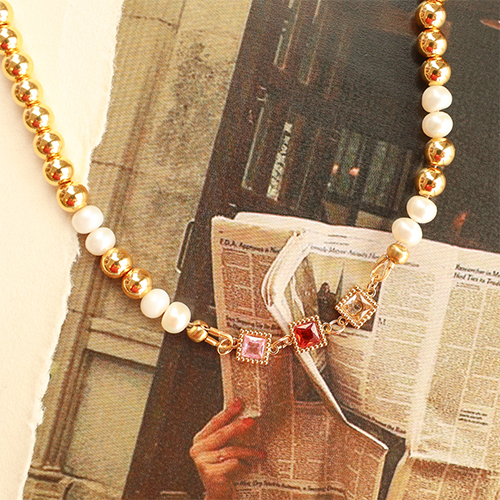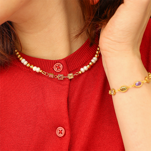 Zwischenstücke aus Stainless Steel - Rostfreiem Stahl Zirkonia Square Gold-red