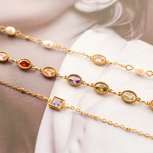 Zwischenstücke aus Stainless Steel - Rostfreiem Stahl Zirkonia Oval Gold-light orange