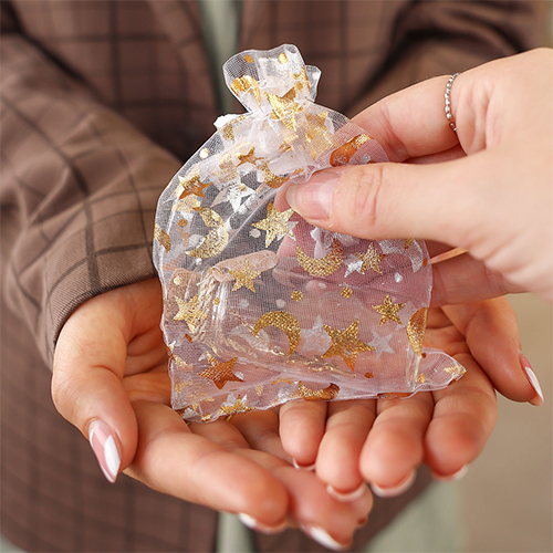 Unsere praktischen Organza-Schmucksäckchen in winterlichen Farbtönen sind ein stilvolles Muss für Ihre Herbstkollektion! Wählen Sie aus Säckchen in verschiedenen Farben mit Monden, Sternen oder Blumenmuster. So gelingt es, Kunden mit festlich verpacktem Schmuck zu begeistern.