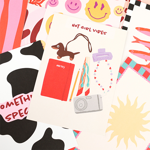 BY31® Karten für Schmuck "Hot girl vibes" Off white-red-lilac-brown