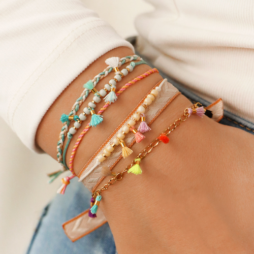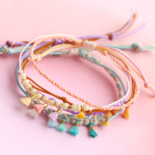 Wenn Sie diese Mini-Quasten mit einem Biegering an Creolen befestigen, können Sie in kürzester Zeit eine verspielte Ohrring-Serie gestalten! Die Mini-Quasten eignen sich auch hervorragend, um sommerliche Armbänder herzustellen. Denken Sie an schmale Bänder wie Makramee-Bänder oder Satinbänder. Natürlich können Sie auch Jasseron verwenden. Verarbeiten Sie Rocailles in passenden Farben. Um ein elegantes Ergebnis zu erzielen, wechseln Sie sie mit DQ-Metallperlen ab.