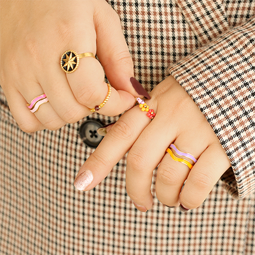 Stainless Steel - Rostfrei Stahl Ringe Gold-neon pink