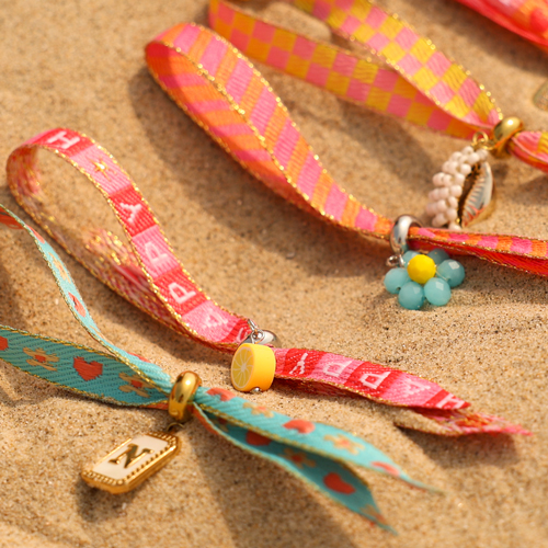 Diese Schmuckbänder sind echte Hingucker, geschmückt mit fröhlichen Texten wie "Happy", "Ocean Child" und "Good Vibes" sowie mit bezaubernden Mustern, Blumen und Herzen. Mit dieser einzigartigen Serie kreieren Sie die schönsten Fußkettchen, Sonnenbrillenketten und Armbändchen.