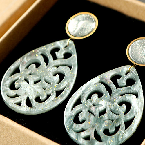 Anhänger Resin Tropfen Barock 38x27mm Ash grey-green