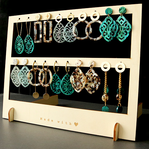 Schmuck Display Bambus für Ohrringe zwei Reihen "made with ♥" Natural (natürliche Farbe Bambus)