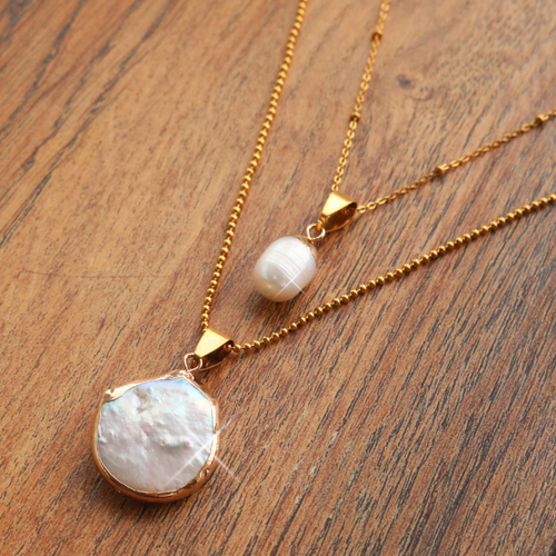 Süsswasser Perlen Anhänger asymmetric Drop Gold-Natural white