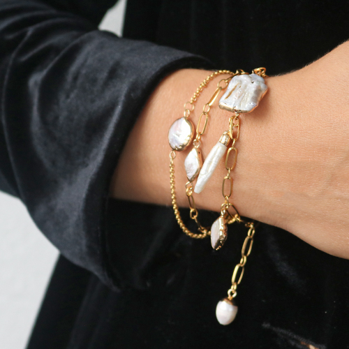 BQ Süsswasser Perlen Anhänger asymmetric Gold-Natural white