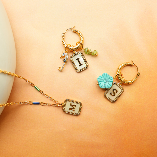 Die Edelstahl-Perlmuttanhänger aus dieser Serie sind jeweils mit einer Initiale verziert. Perfekt, um Ketten mit einer persönlichen Note zu fertigen. Kreieren individuelle Designs in Kombination mit Glasperlen, Jasseron und Naturstein-Chipstone oder Creolen, an denen die Anhänger z. B. mit Natursteinblumen stilvoll schwingen.