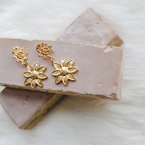 Stainless Steel - Rostfrei Stahl Ohrringe/Ohrstecker Flower mit Öse Gold