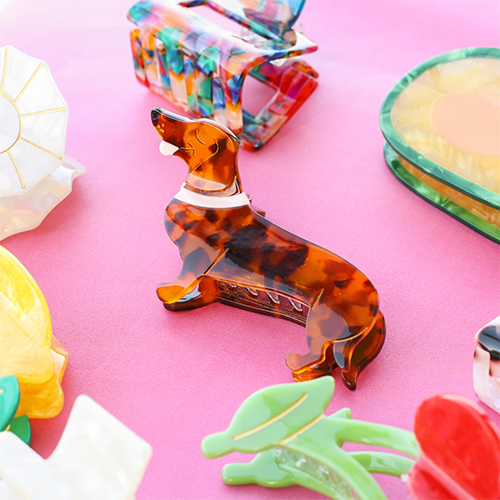 Haarschmuck hair clamp Dachshund Brown-nude-gold