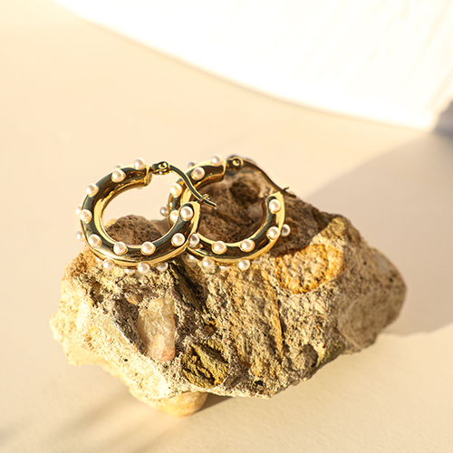 Stainless Steel - Rostfrei Stahl Ohrringe / Creolen with Imitation Pearls Gold